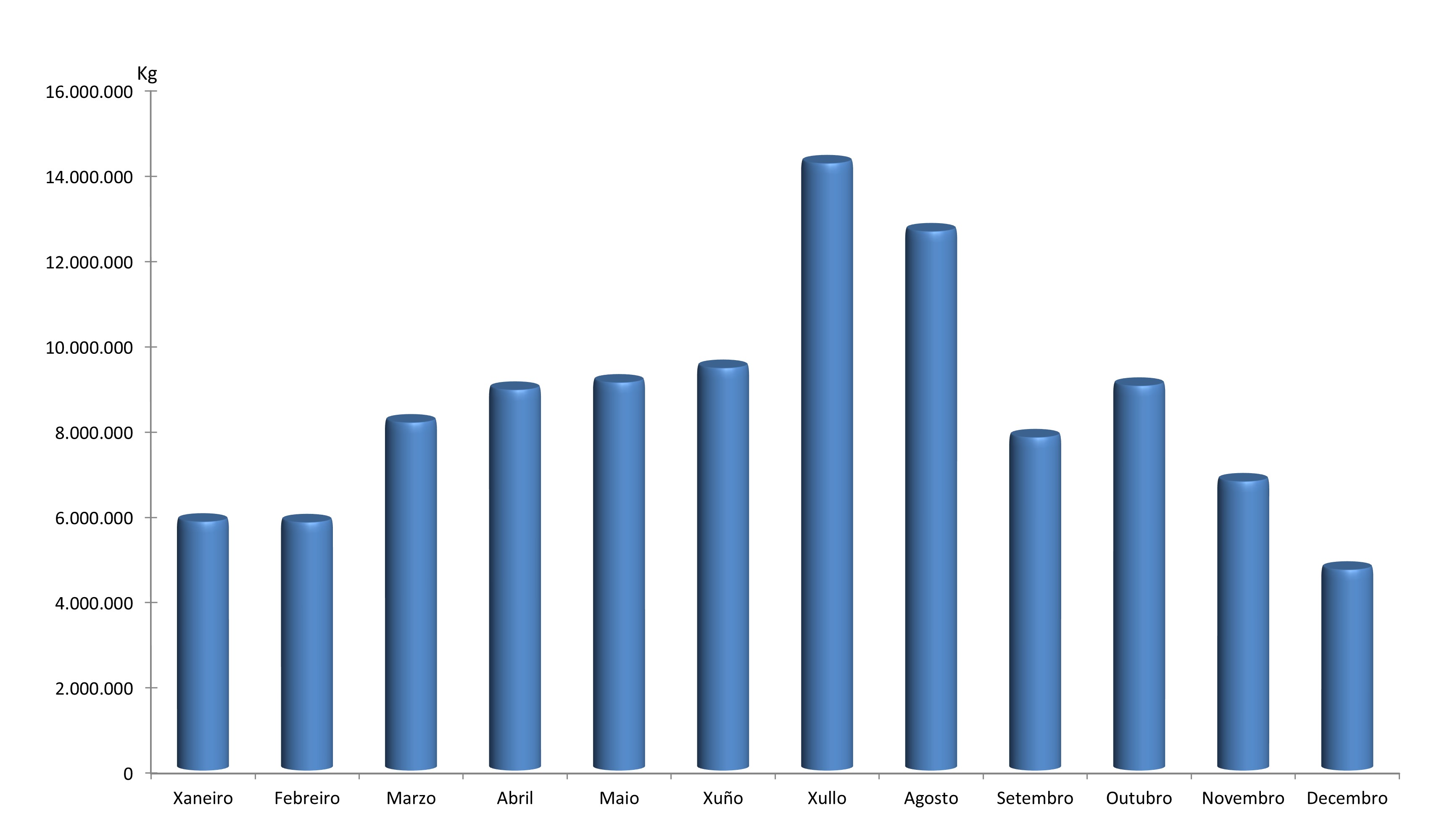 | Bivalvos | 224.524 | 193.493 | 172.851 | 154.824 | 213.239 | 248.261 | 325.192 | 432.466 | 268.182 | 300.051 | 491.588 | 711.135 | 3.735.806 |