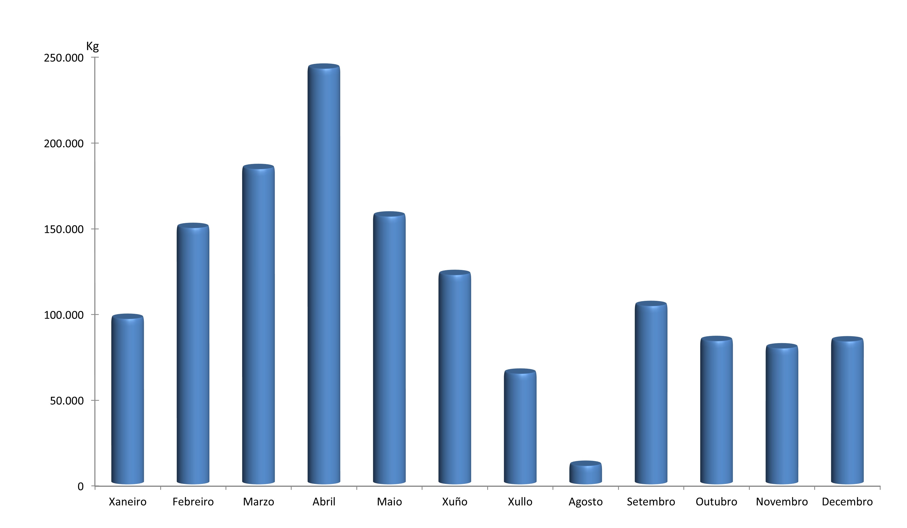 | Cogombro de mar real | 6.789 | 8.468 | 5.963 | 5.395 | 13.229 | 12.345 | 11.090 | 6.444 | 6.856 | 3.612 | 4.262 | 3.876 | 88.328 |