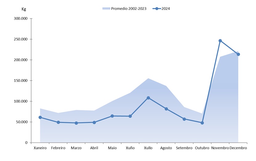 | Xaneiro | 61.397 | 807.004 | 82.489 | 1.044.648 | -21.092 | -237.644 | -25,57% | -22,75% |