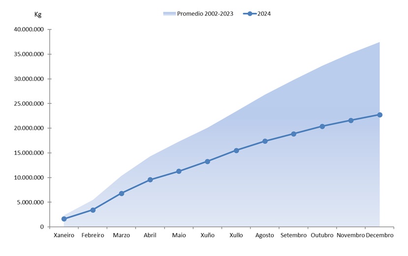 | Bivalvos | 27.615 | 44.151 | 12.725 | 27.777 | 14.890 | 16.373 | 117,02% | 58,94% |