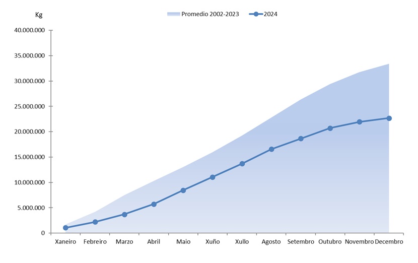 | Crustáceos | 238.405 | 5.368.770 | 290.634 | 5.616.698 | -52.228 | -247.928 | -17,97% | -4,41% |