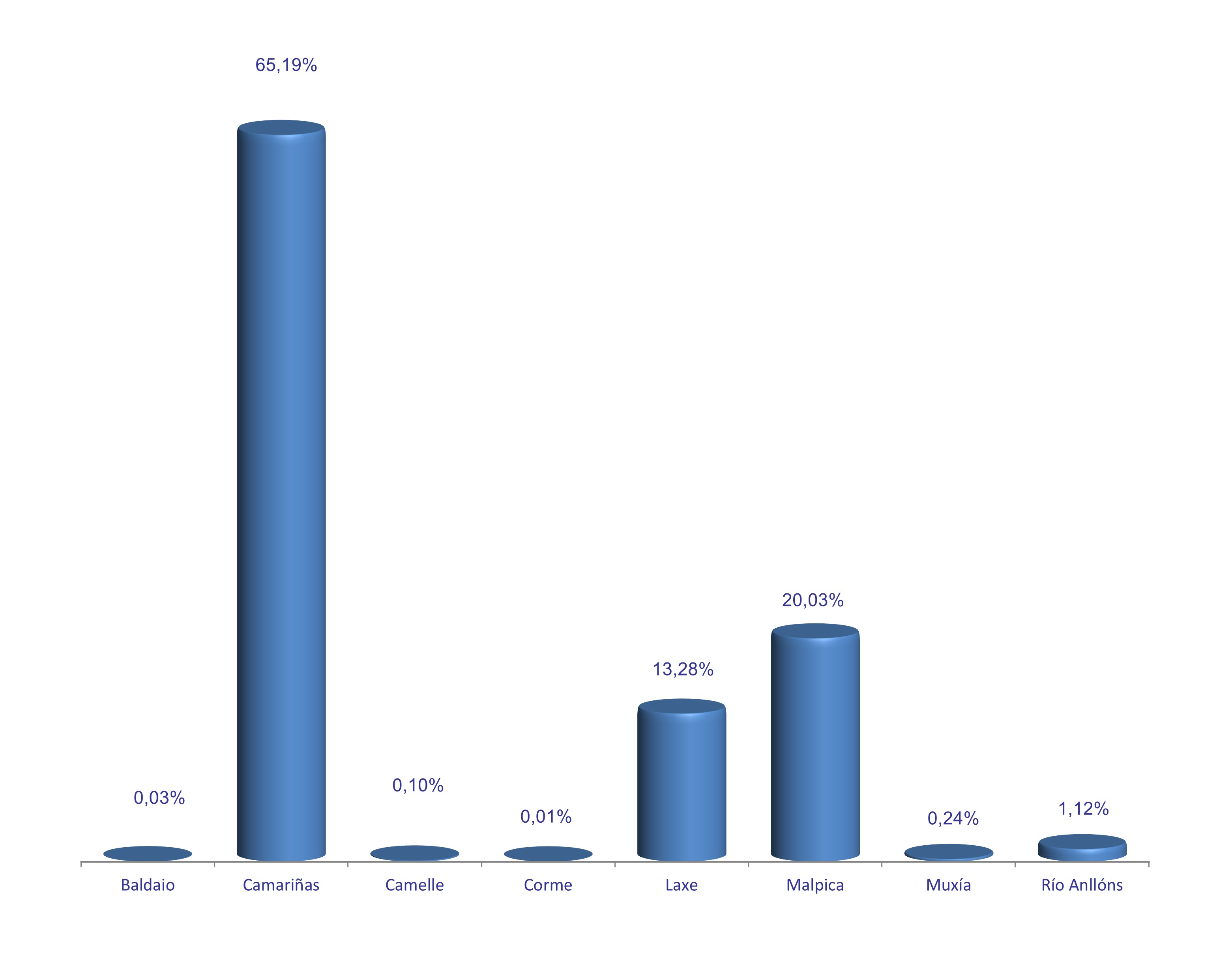 | Baldaio | 1.270 | 0,03% | 9.890 | 0,12% | 7,79 |