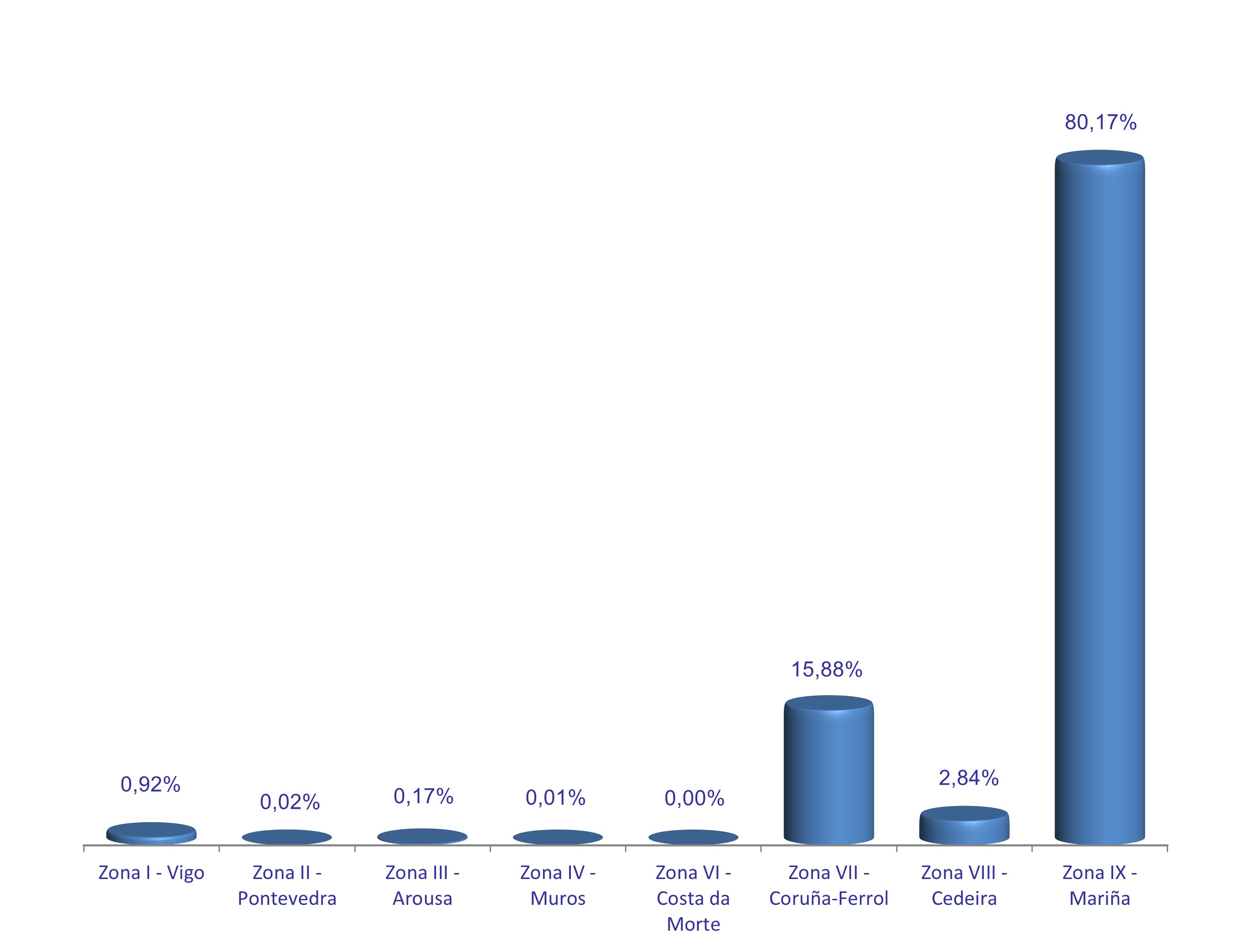 | Zona II - Pontevedra | 9 | 313 | 0,02% | 1.273 | 0,02% | 4,07 |
