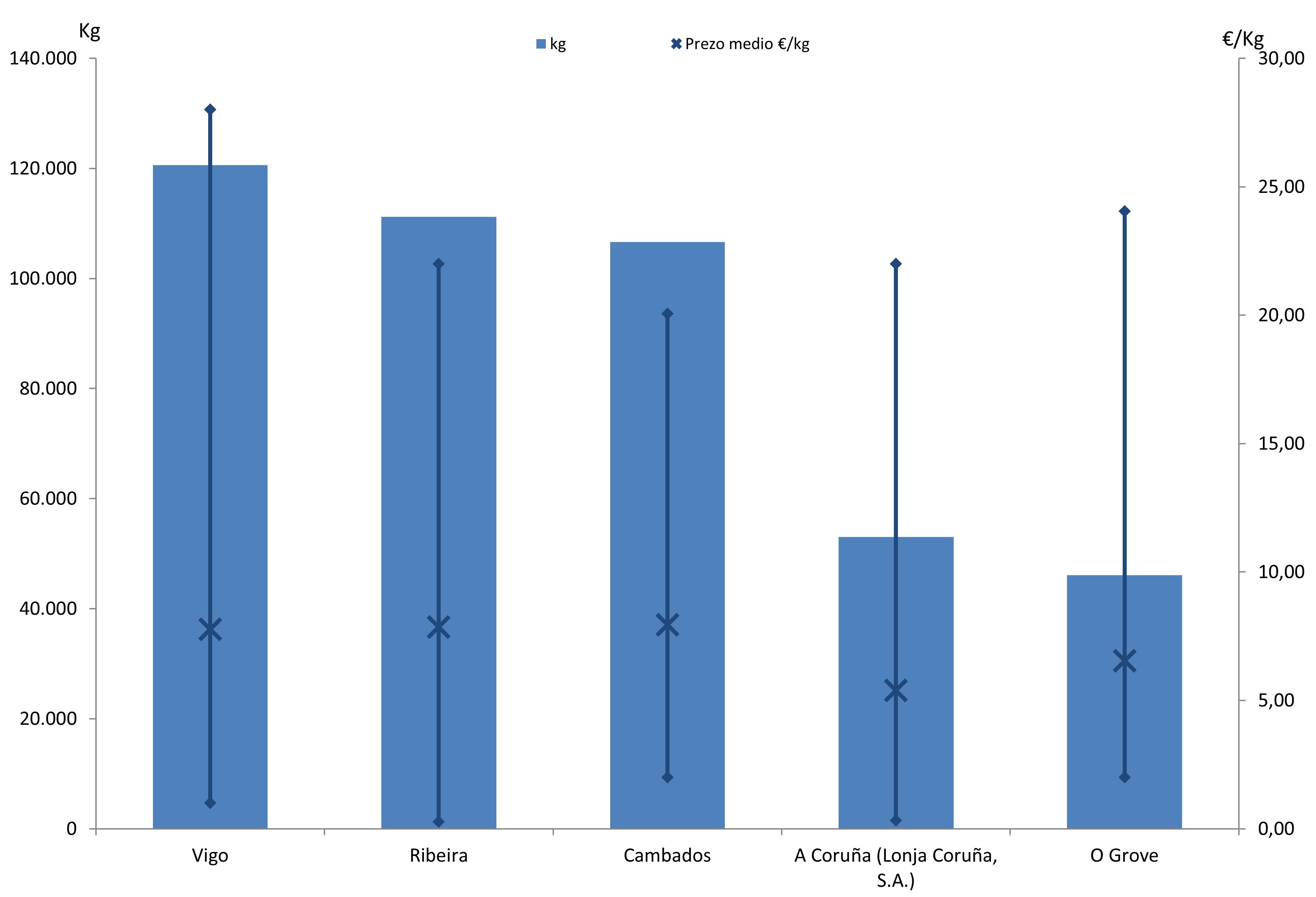 | A Coruña (Lonja Coruña, S.A.) | 235 | 53.034 | 8,76% | 285.333 | 6,44% | 5,38 |