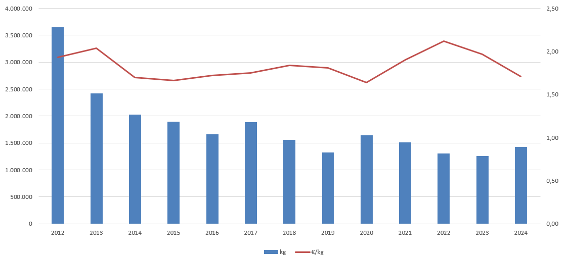 | Zona VII - Coruña-Ferrol | 825.564 | 768.780 | 694.433 | 776.820 | 537.770 | 487.906 | 688.383 | 719.094 | 626.684 | 481.335 | 599.940 | ||