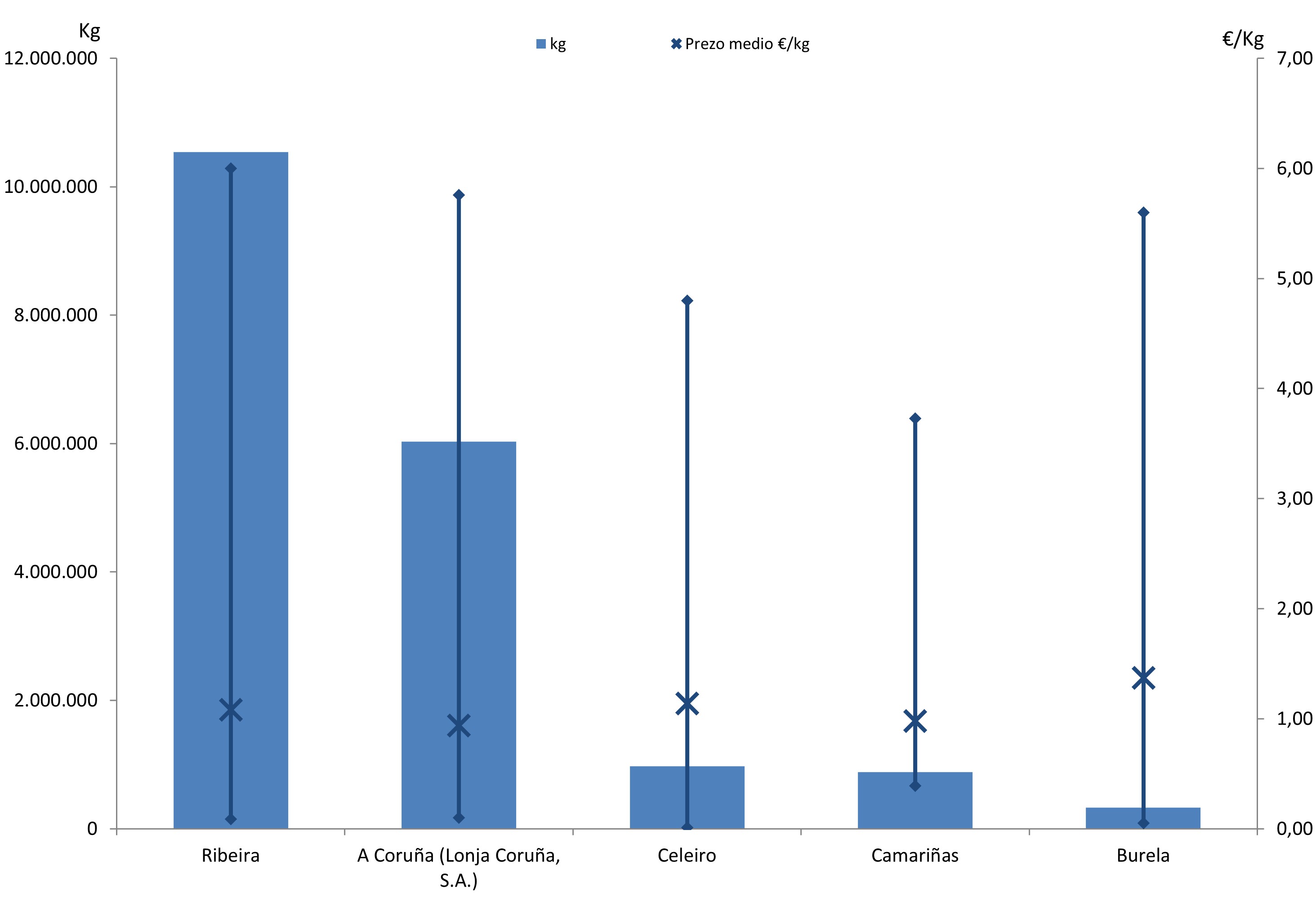 | A Coruña (Lonja Coruña, S.A.) | 245 | 6.028.025 | 31,92% | 5.663.067 | 28,91% | 0,94 |
