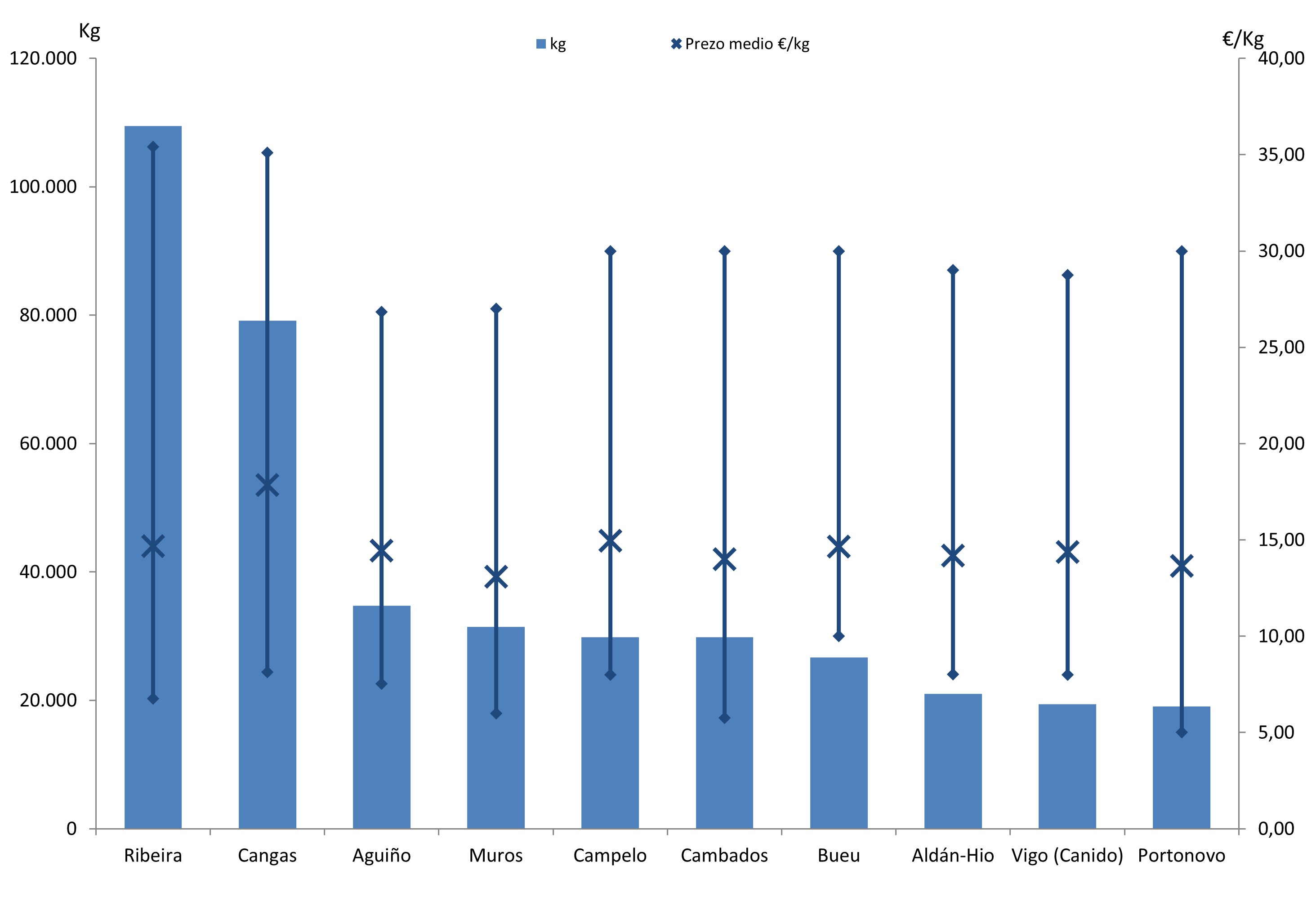 | Nº días | kg | % | Euros | % | Euros/kg | |