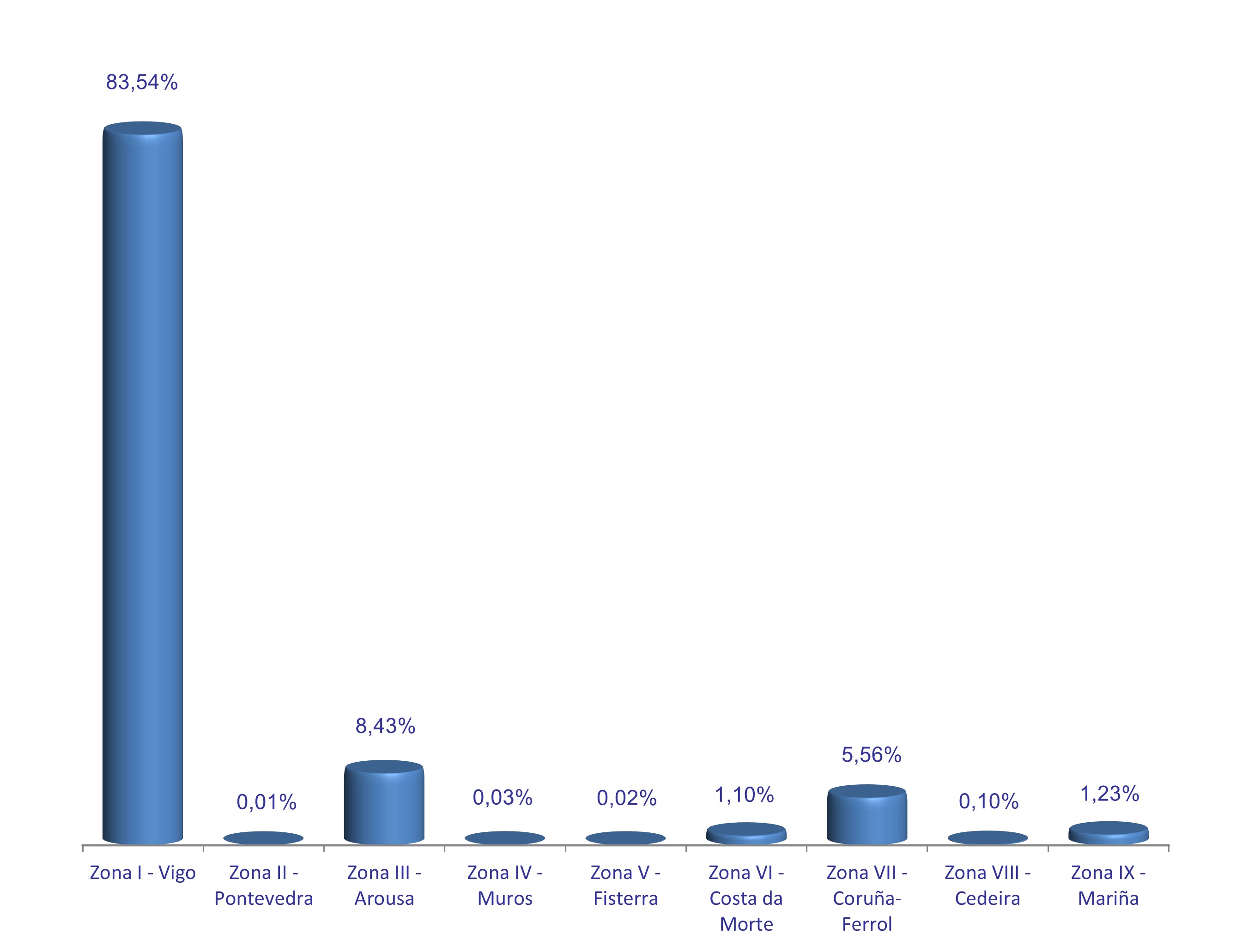 | Zona VIII - Cedeira | 21 | 1.134 | 0,10% | 6.007 | 0,08% | 5,30 |