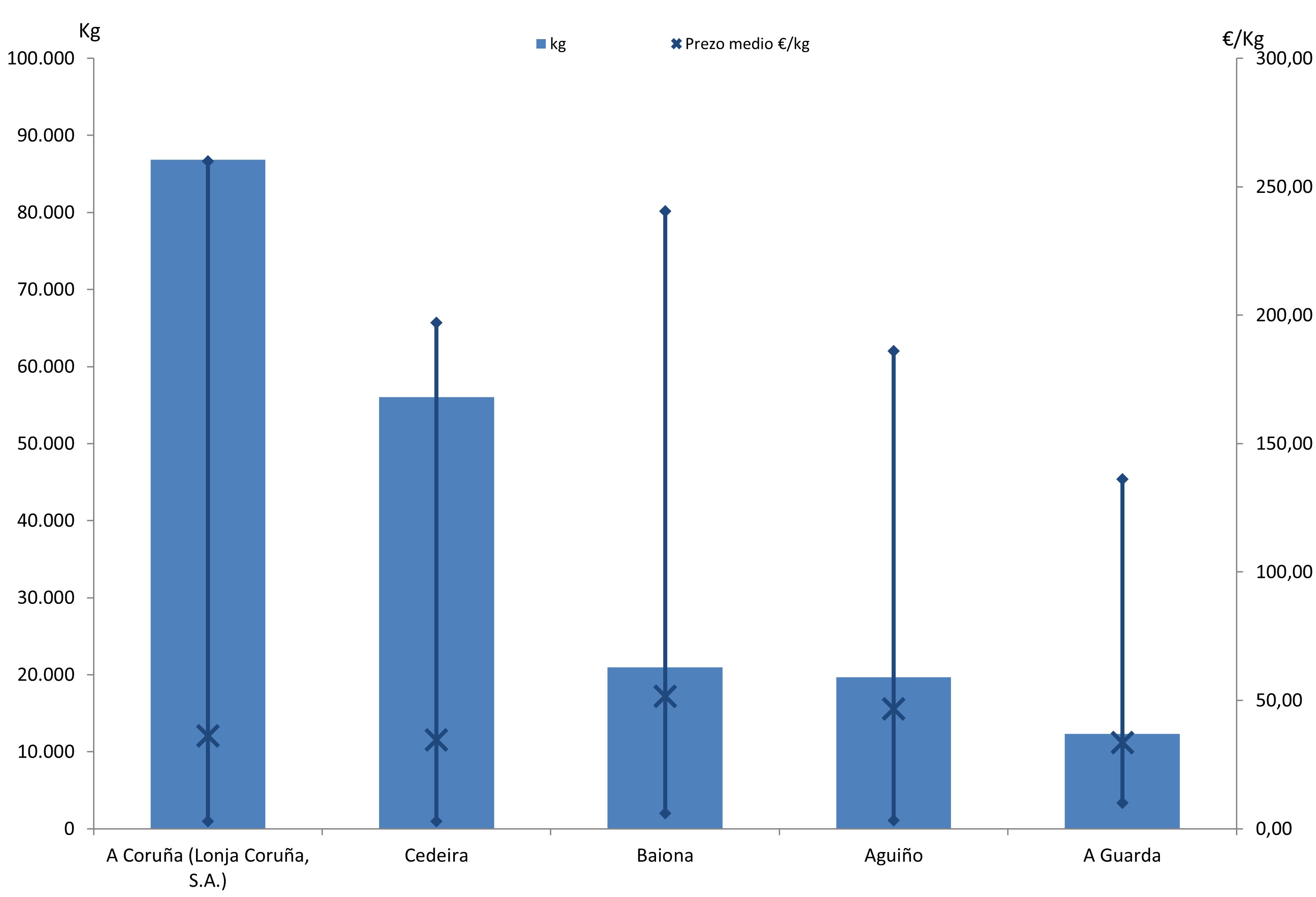 | A Coruña (Lonja Coruña, S.A.) | 218 | 86.865 | 37,67% | 3.150.085 | 35,22% | 36,26 |