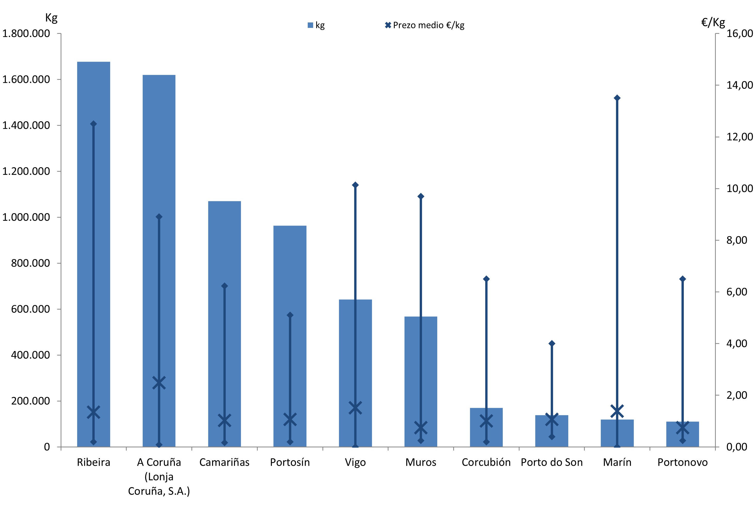 | A Coruña (Lonja Coruña, S.A.) | 249 | 1.620.114 | 21,82% | 4.038.536 | 36,69% | 2,49 |