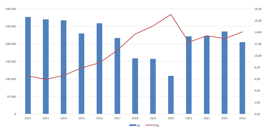 | Nº días | kg | % | Euros | % | Euros/kg | |