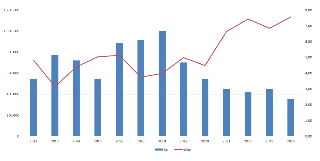 | Nº días | kg | % | Euros | % | Euros/kg | |