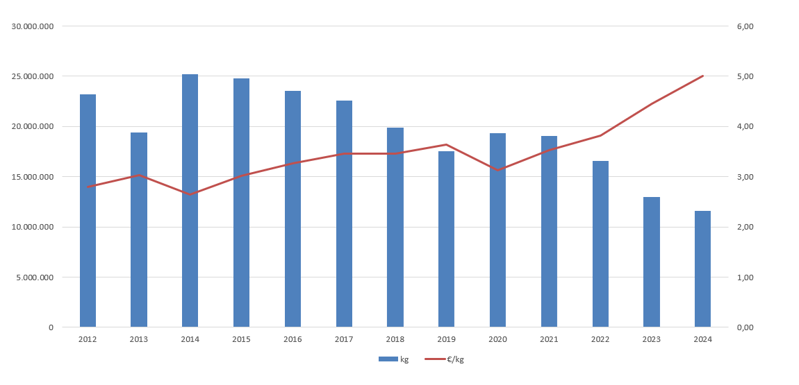| Nº días | kg | % | Euros | % | Euros/kg | |