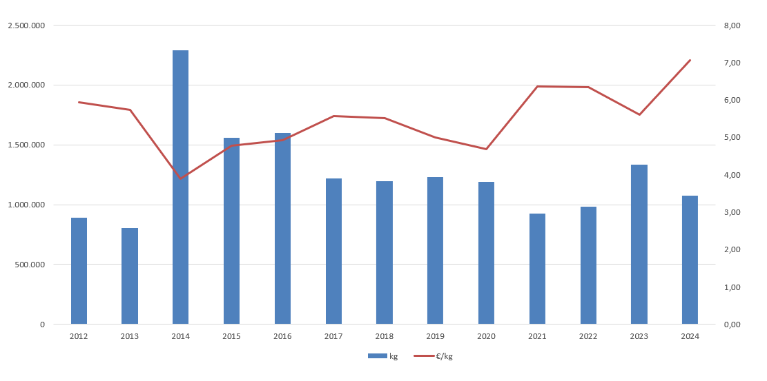 | Nº días | kg | % | Euros | % | Euros/kg | |