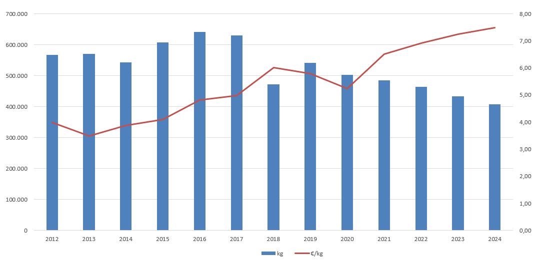 | Nº días | kg | % | Euros | % | Euros/kg | |