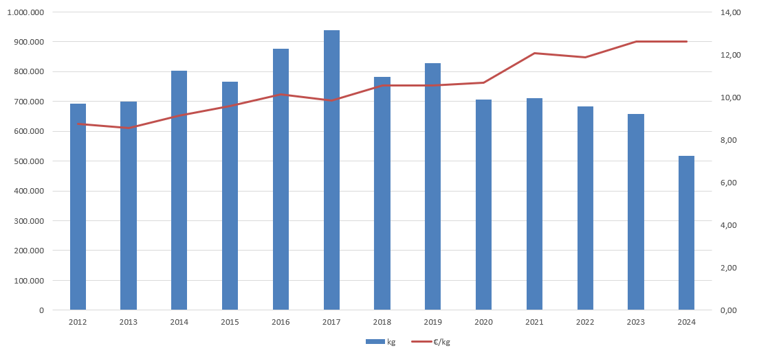 | Nº días | kg | % | Euros | % | Euros/kg | |