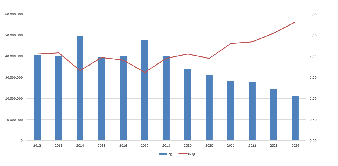 | Nº días | kg | % | Euros | % | Euros/kg | |