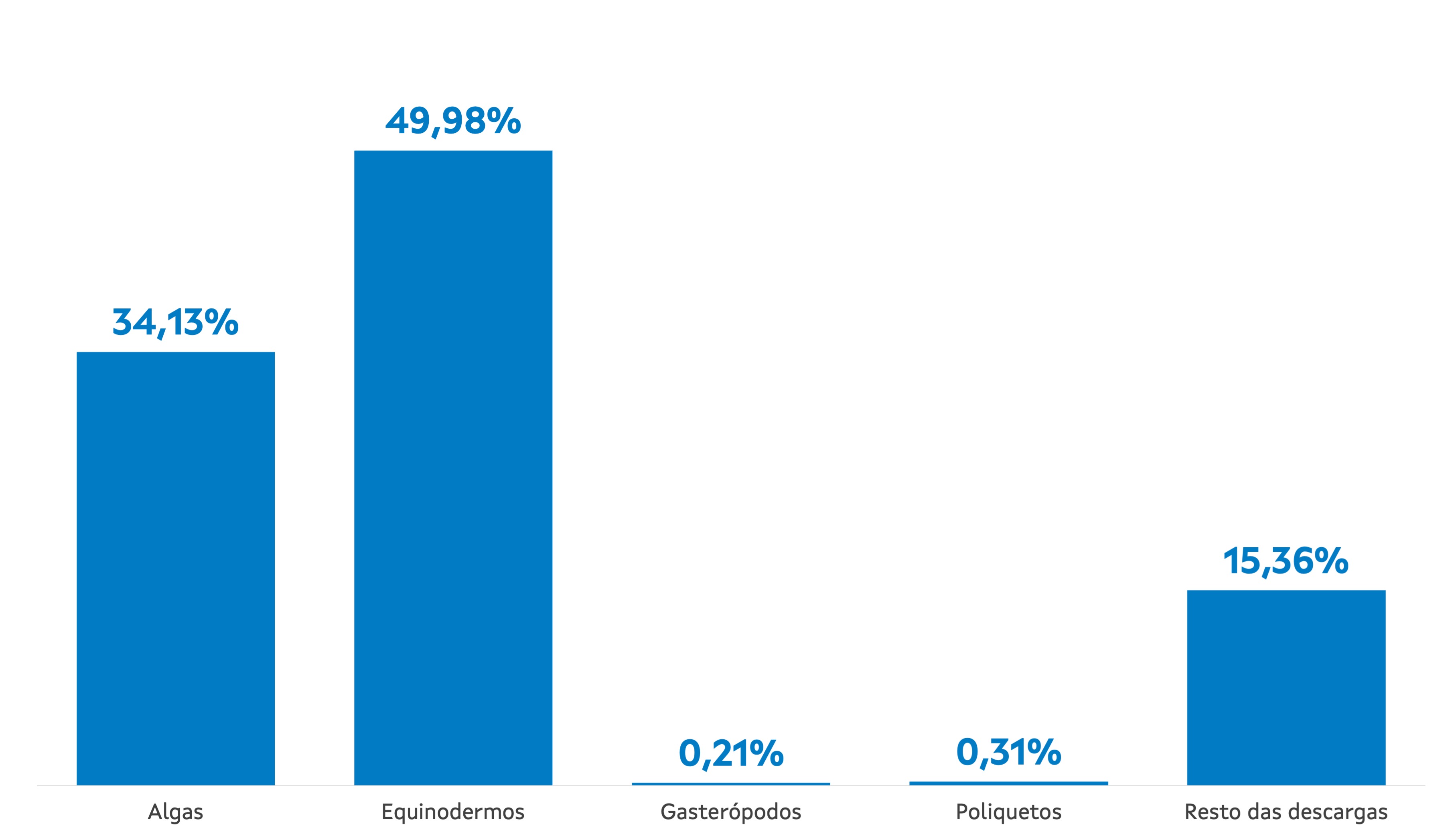 | Equinodermos | 589.838 | 49,98% | 6.850.330 | 77,62% | 11,61 |