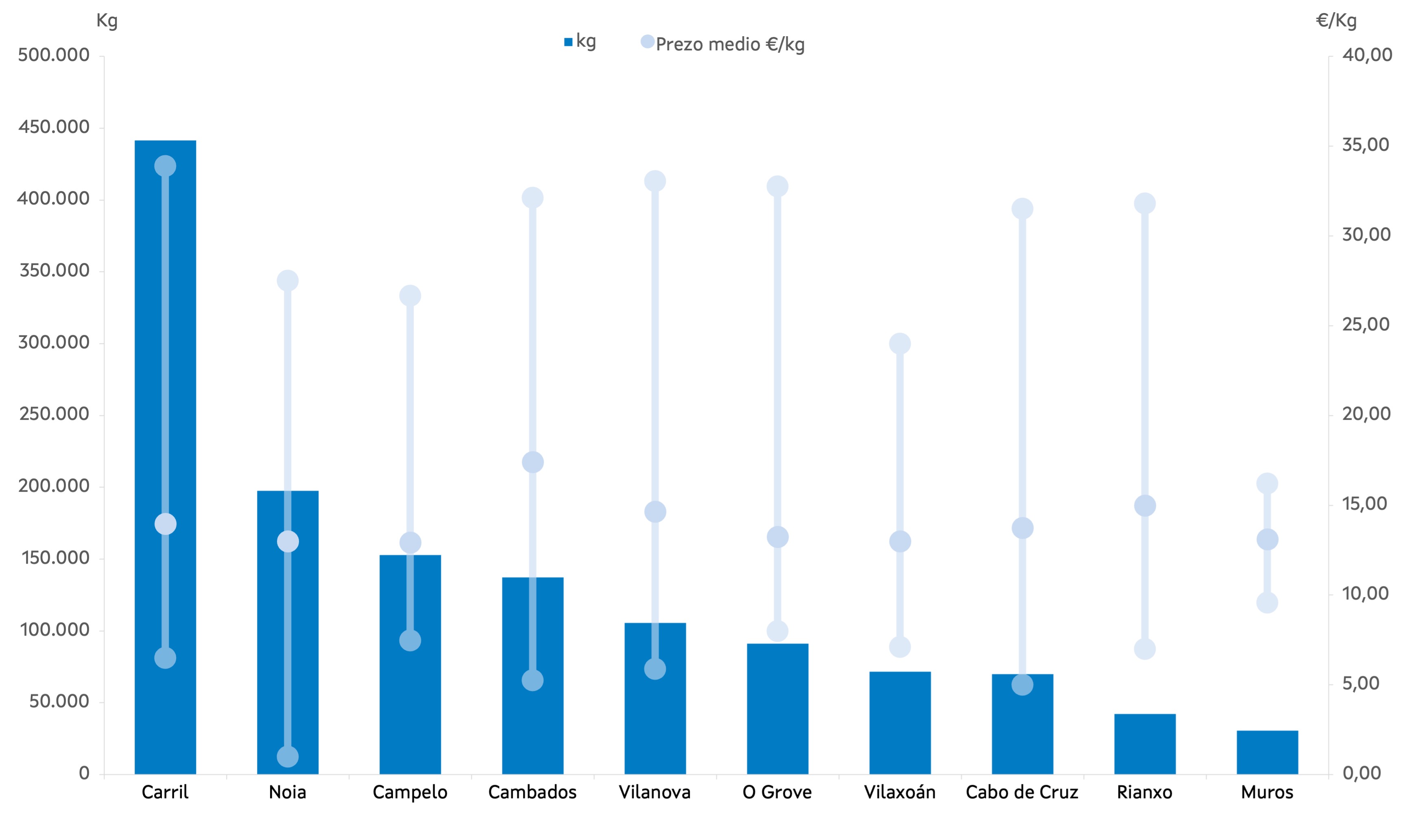 | Muros | 67 | 30.552 | 2,11% | 400.437 | 1,96% | 13,11 |