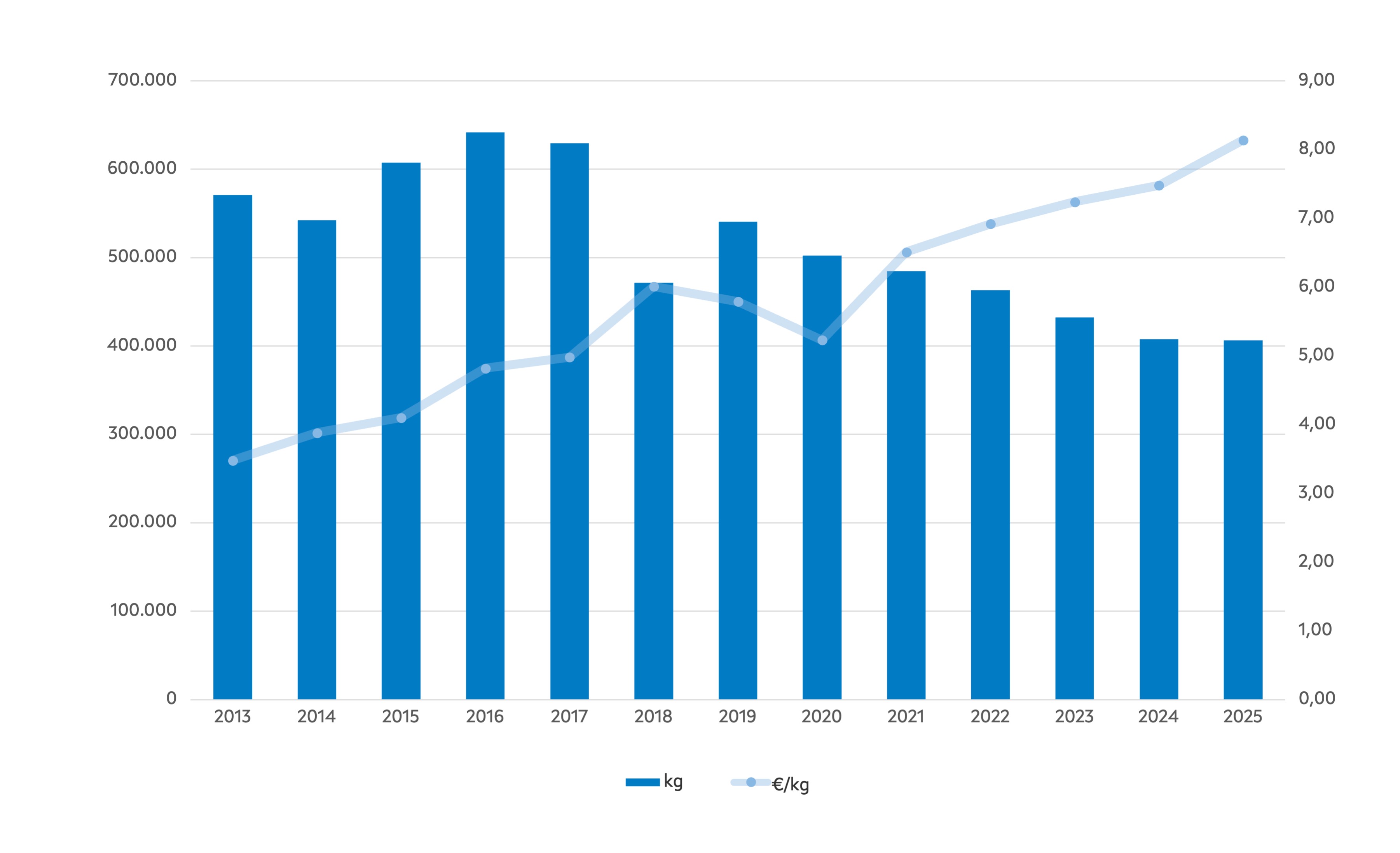 | Nº días | kg | % | Euros | % | Euros/kg | |