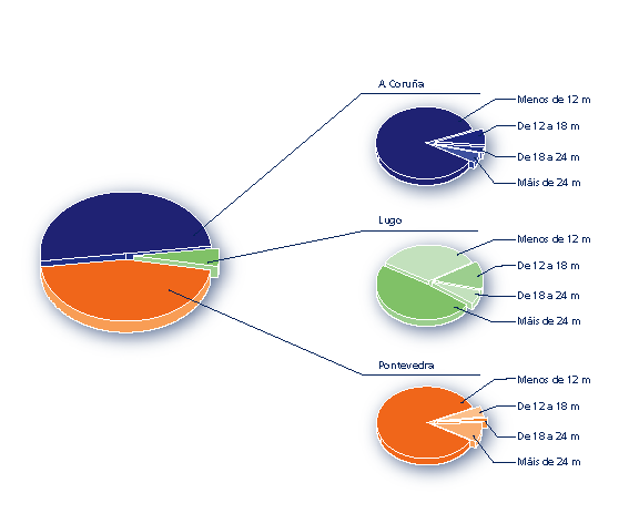 | Menos de 12 m | De 12 a 18 m | De 18 a 24 m | Máis de 24 m | Total | |||||||