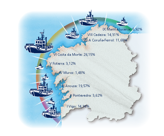 | Zona VI - Costa da Morte | 159 | 10,42% | 26,15% | 1,66% | 282 | 7,72% | 3.805 | 9,22% |
