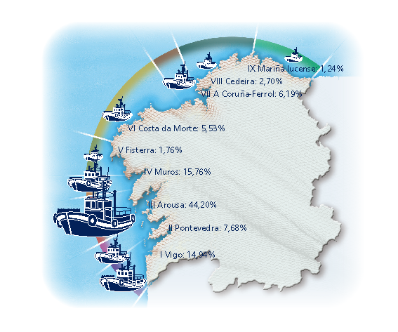 | Zona VIII - Cedeira | 89 | 5,95% | 2,70% | 0,25% | 268 | 7,46% | 2.624 | 7,19% |