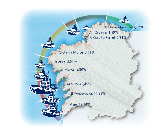 | Zona III - Arousa | 727 | -4,09% | 42,49% | -1,12% | 1.034 | -2,51% | 13.679 | -2,74% |