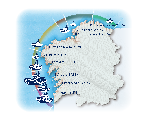 | Zona VIII - Cedeira | 92 | 2,22% | 2,84% | 0,18% | 324 | 0,86% | 3.077 | 1,28% |