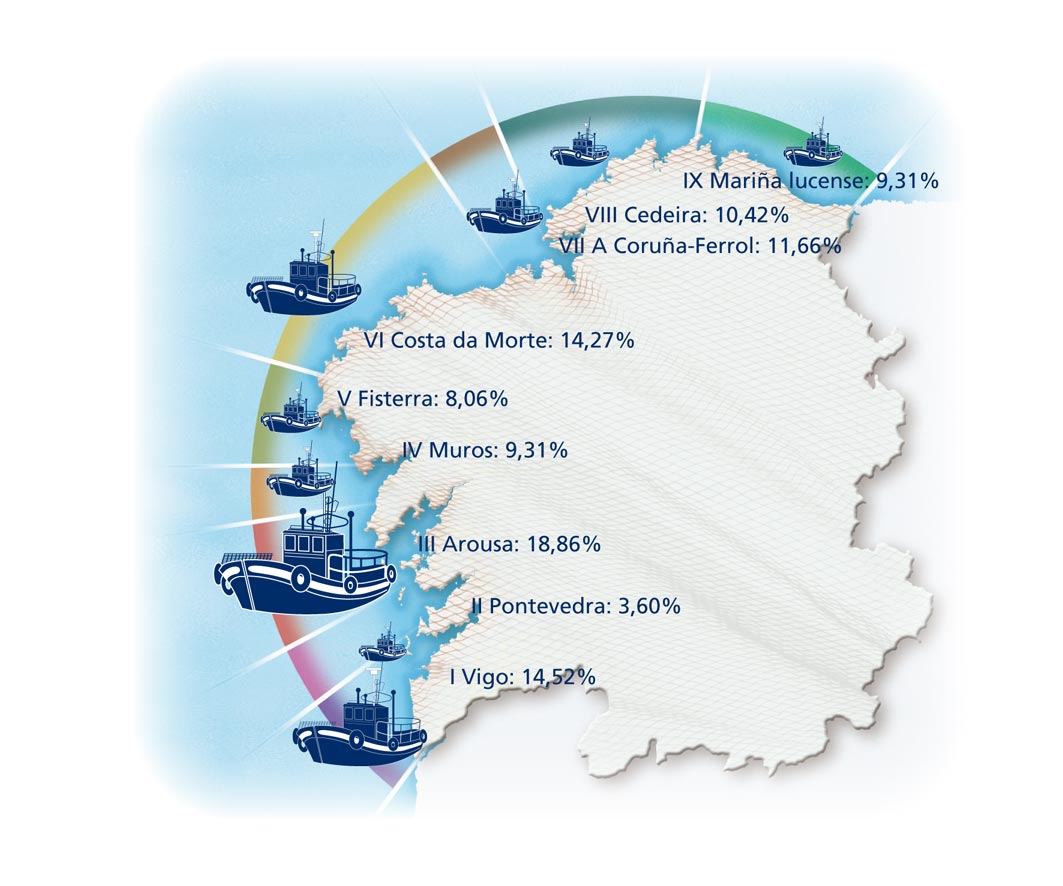 | Zona III - Arousa | 152 | 2,01% | 18,86% | 0,40% | 487 | 15,38% | 4.808 | 14,87% |