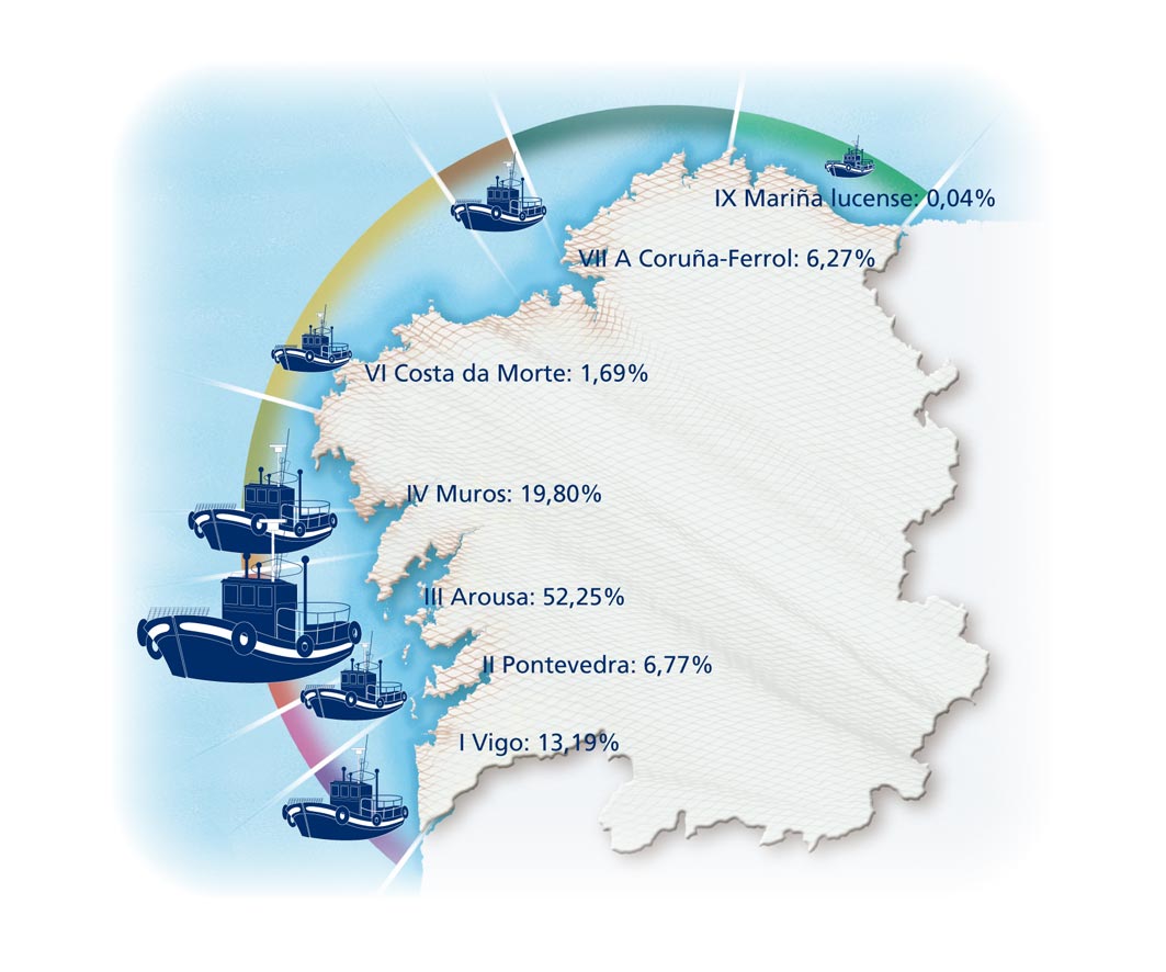 | Zona III - Arousa | 1.359 | -0,66% | 52,25% | 0,06% | 1.204 | -0,63% | 18.584 | -1,45% |