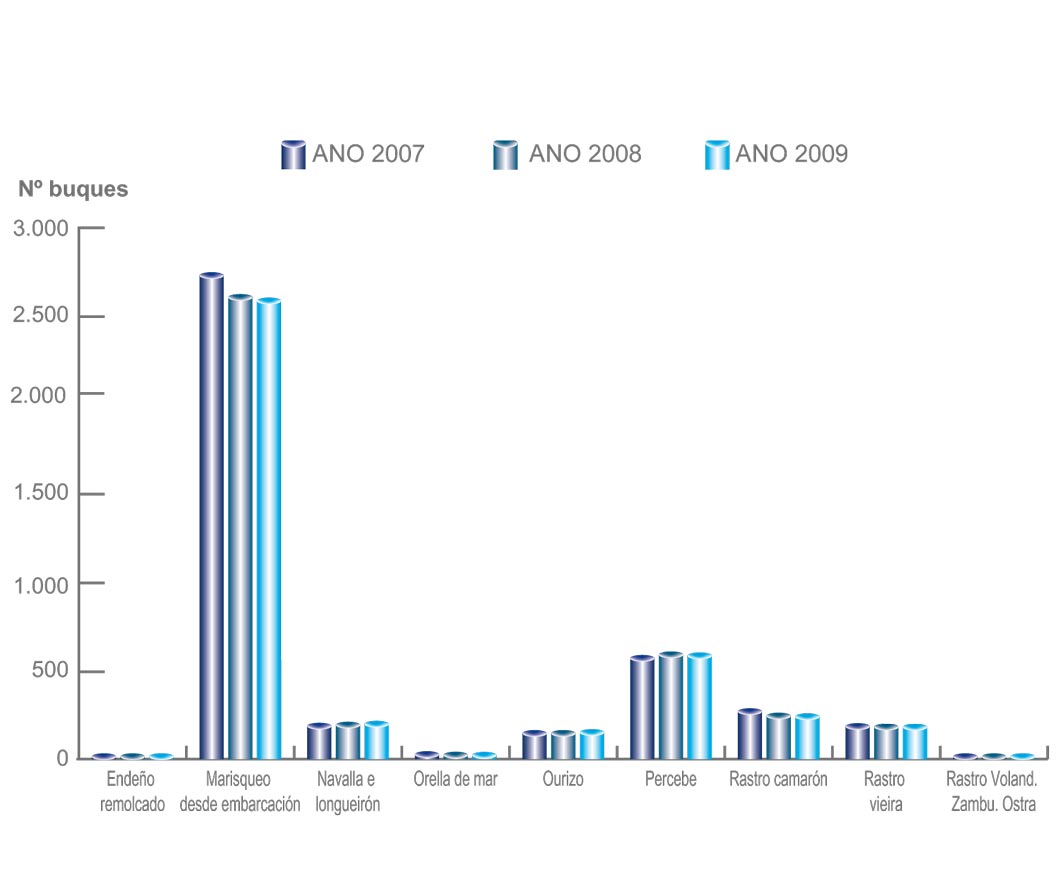 | Artes de marisqueo | 3.270 | -24 | 5,63 | -0,01 | 1,35 | -0,01 | 18,22 | -0,79 |