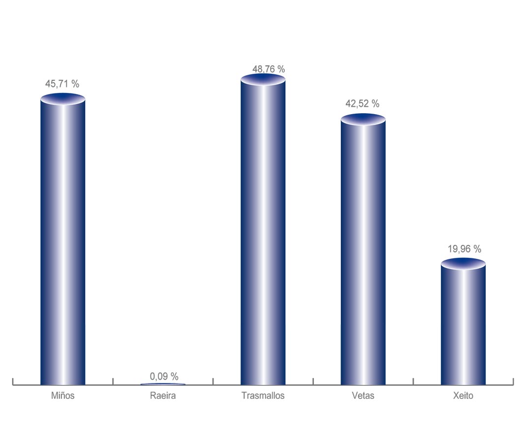 | Miños | 1.017 | -0,59% | 45,71% | 0,12% | 5.680 | -0,55% | 48.083 | 0,17% |