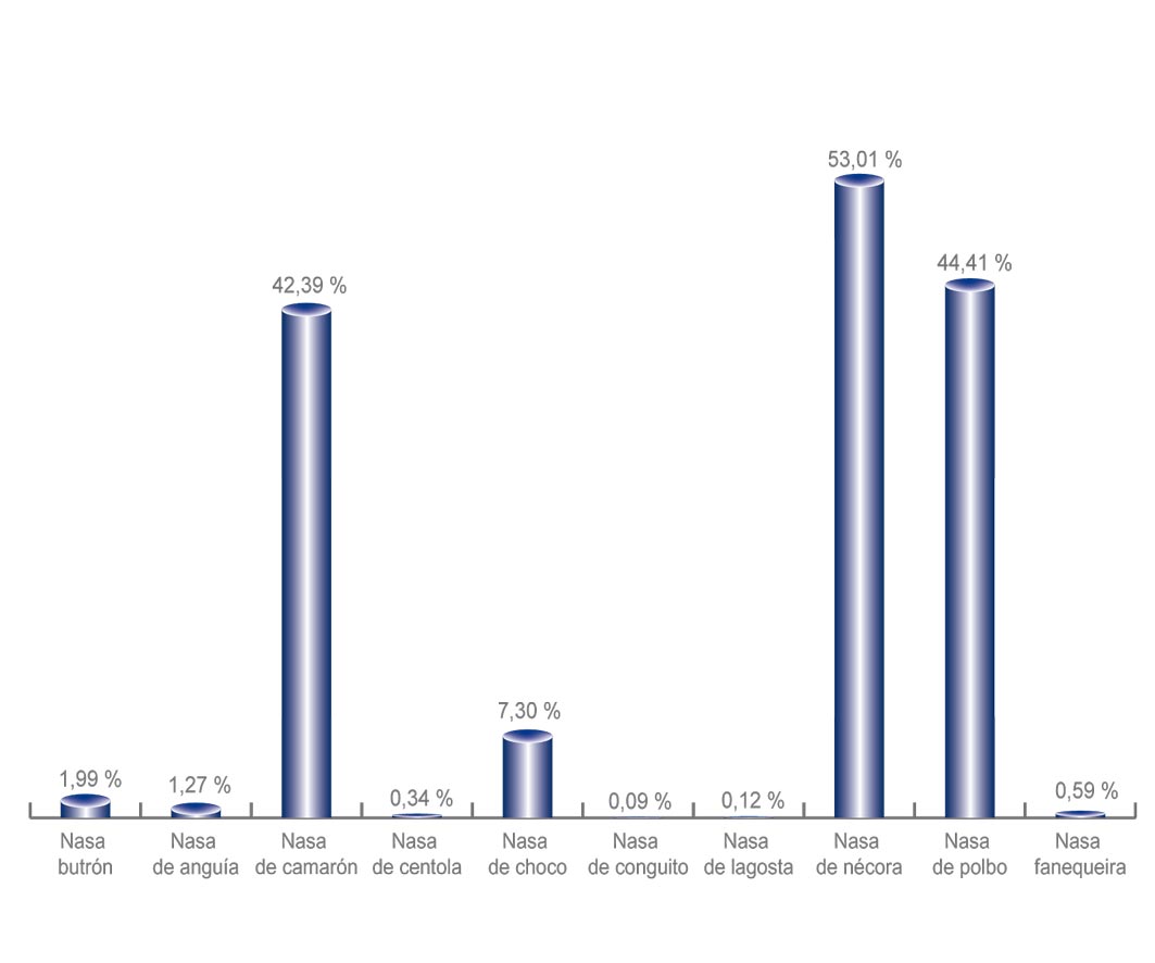 | Nasa de centola | 11 | 0,00% | 0,34% | 0,00% | 32 | 0,00% | 362 | 0,00% |