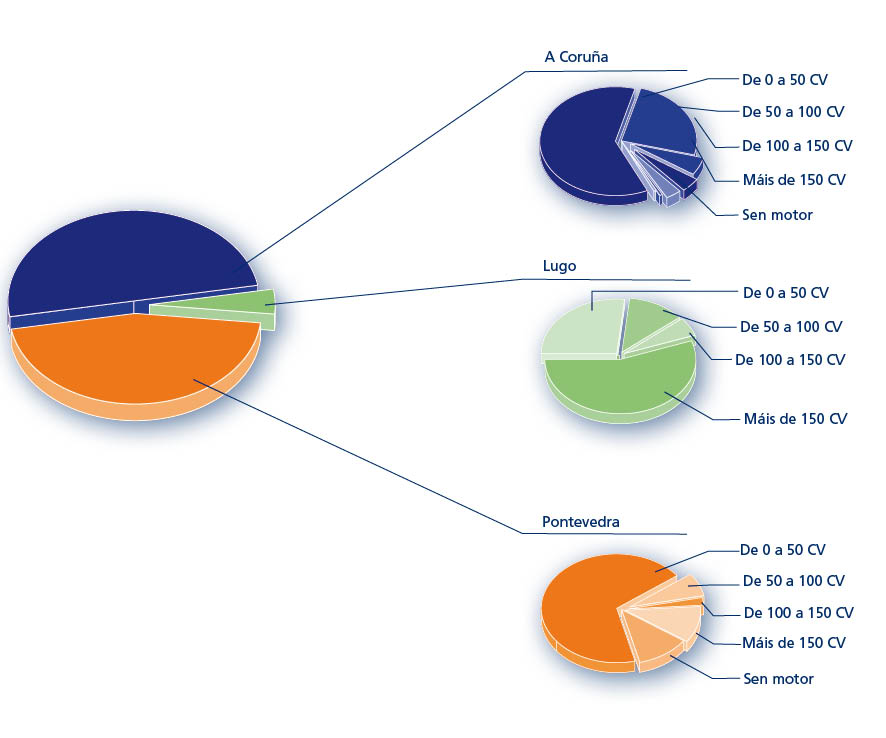 | Sen motor | De 0 a 50 CV | De 50 a 100 CV | De 100 a 150 CV | Máis de 150 CV | Total | ||||||||