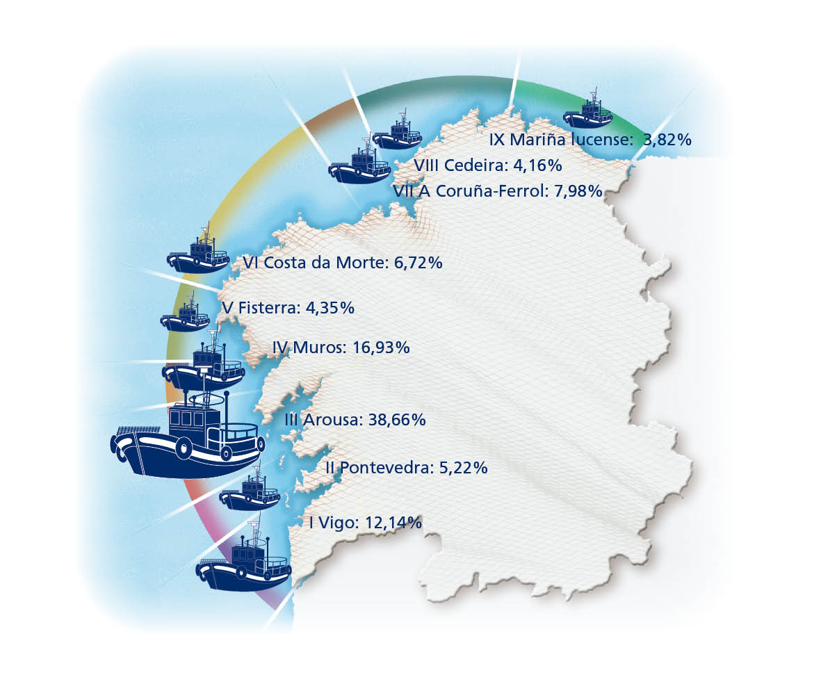 | Zona VIII - Cedeira | 86 | -1,15% | 4,16% | -0,02% | 285 | -3,01% | 2.827 | -2,96% |