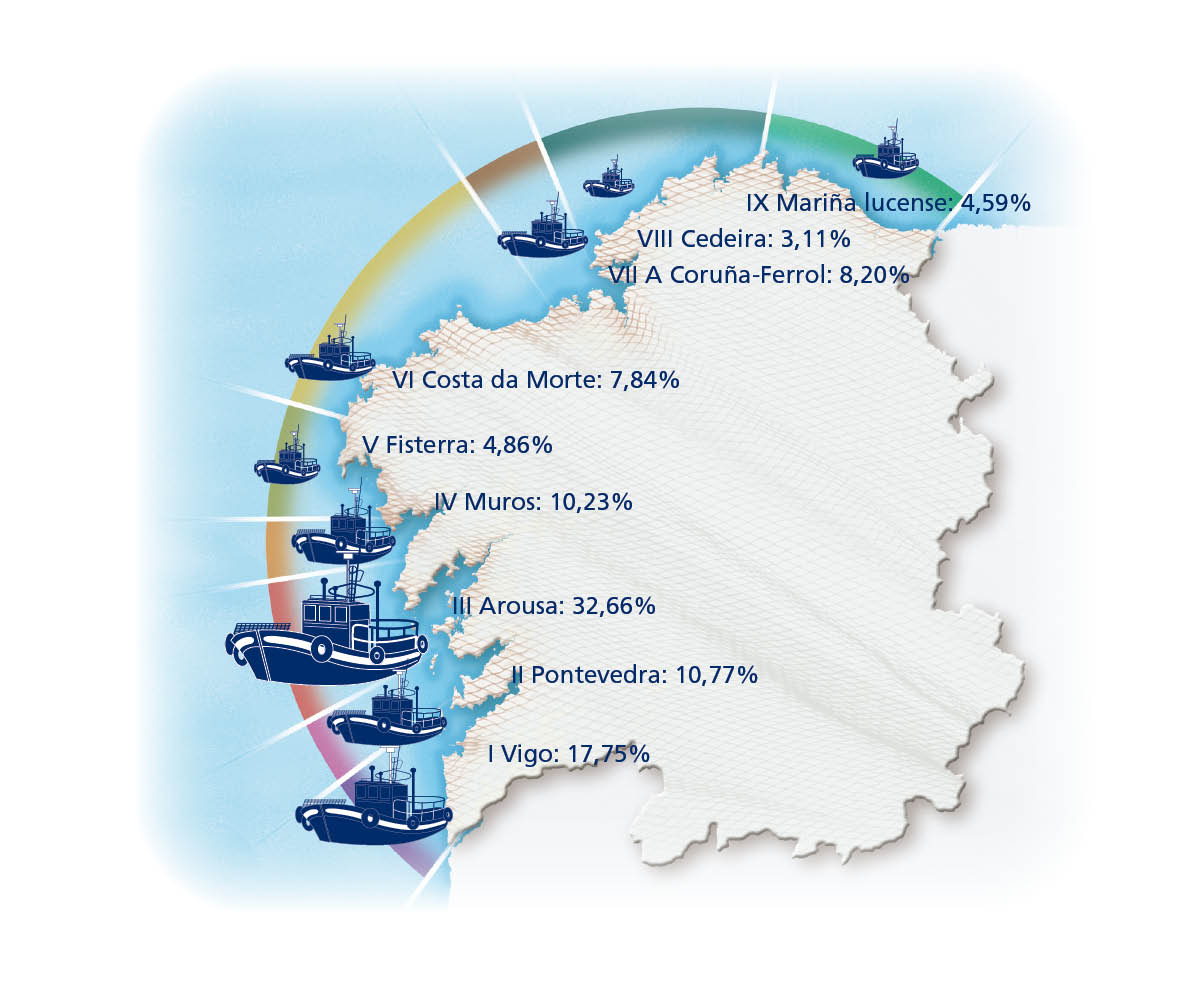 | Zona VI - Costa da Morte | 174 | -2,79% | 7,84% | -0,21% | 995 | -7,02% | 7.624 | -3,41% |