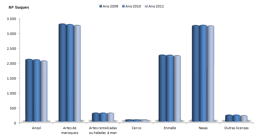 | Artes remolcadas ou haladas á man | 273 | -1 | 6,91 | 0,04 | 2,39 | 0,05 | 24,92 | 0,18 |
