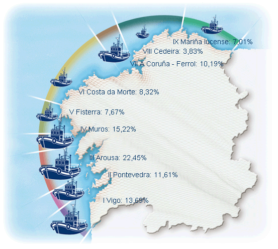 | Zona VI - Costa da Morte | 76 | -2,56% | 8,32% | -0,03% | 647 | -2,84% | 4.087 | -3,31% |