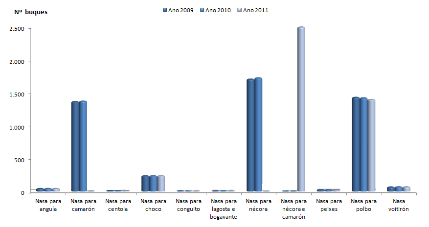 | Nasa para nécora e camarón | 2.500 | 2.500 | 5,95 | 5,95 | 1,73 | 1,73 | 22,24 | 22,24 |