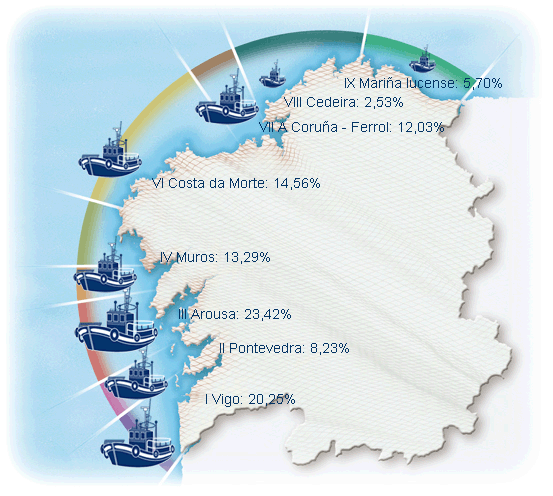 | Zona VI - Costa da Morte | 23 | -4,17% | 14,56% | -0,17% | 761 | -2,34% | 4.578 | 0,88% |