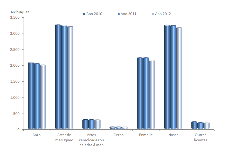 | Artes remolcadas ou haladas á man | 266 | -7 | 6,93 | 0,02 | 2,42 | 0,02 | 25,14 | 0,22 |