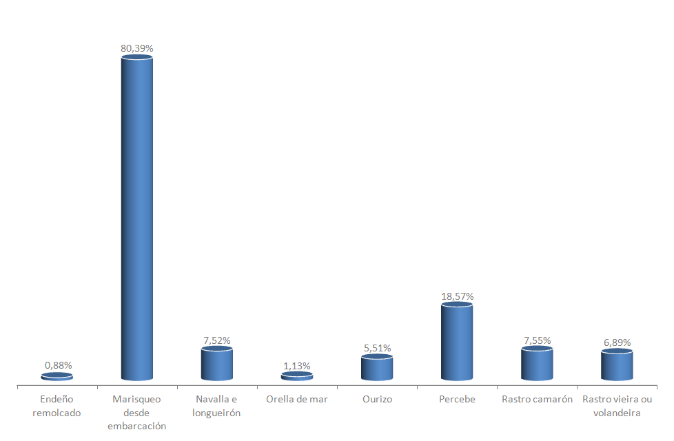 | Marisqueo desde embarcación | 2.554 | -1,20% | 80,39% | 0,21% | 2.591 | -1,25% | 39.589 | -0,18% |