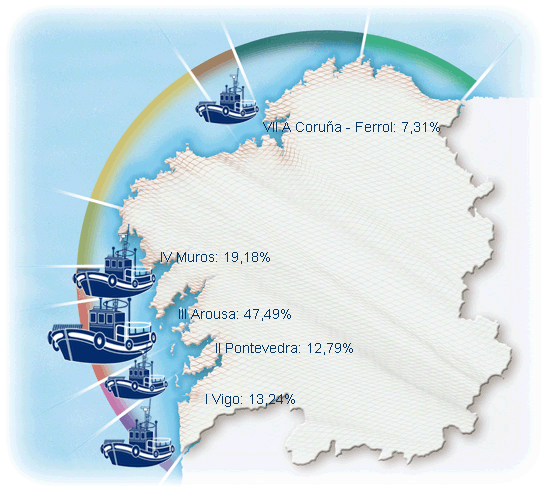 | Zona III - Arousa | 104 | -4,59% | 47,49% | -0,32% | 487 | -4,25% | 4.077 | -5,01% |