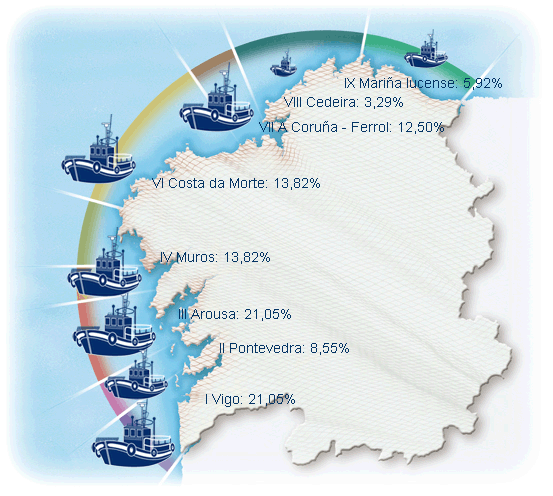 | Zona VIII - Cedeira | 5 | 25,00% | 3,29% | 0,76% | 287 | 10,69% | 1.425 | 12,65% |