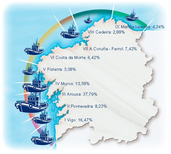 | Zona VI - Costa da Morte | 294 | 2,44% | 6,42% | 0,22% | 4.124 | 7,07% | 20.205 | 6,42% |