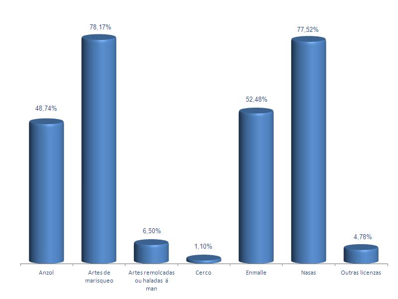 | Artes de marisqueo | 3.140 | -1,16% | 78,17% | -0,10% | 4.225 | -1,47% | 59.407 | -0,35% |