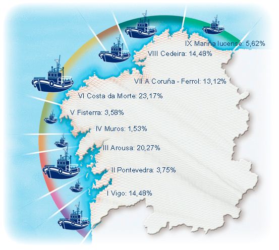 | Zona VIII - Cedeira | 85 | 1,19% | 14,48% | 0,24% | 227 | 0,77% | 2.426 | 2,02% |