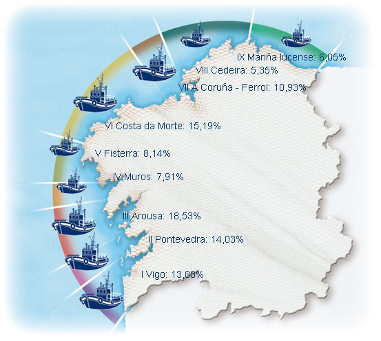| Zona VIII - Cedeira | 69 | -4,17% | 5,35% | -0,11% | 249 | -7,90% | 2.425 | -3,88% |