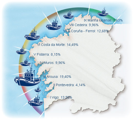 | Zona VIII - Cedeira | 77 | -1,28% | 9,96% | -0,03% | 232 | -2,41% | 2.514 | -1,24% |